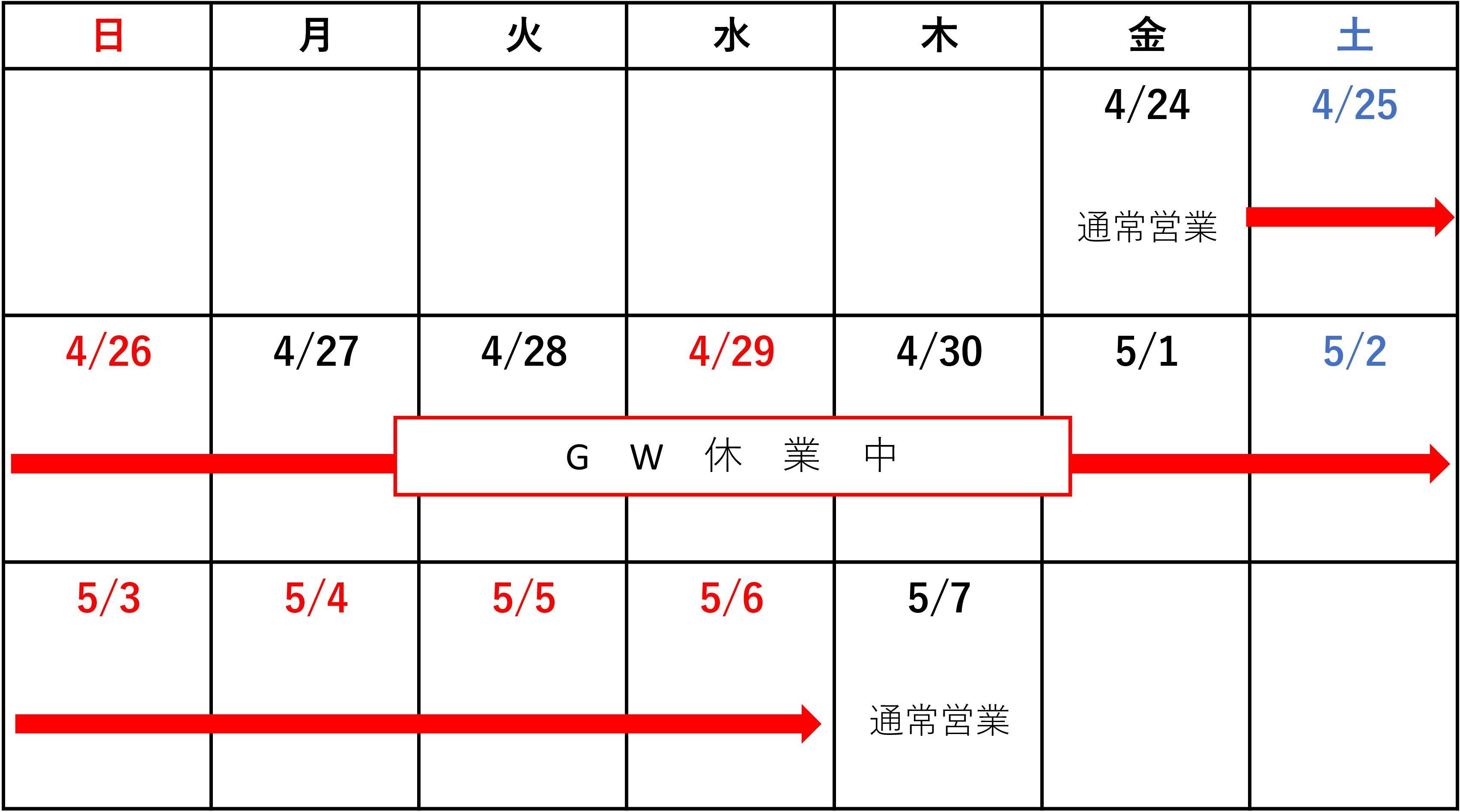GW休業のお知らせ