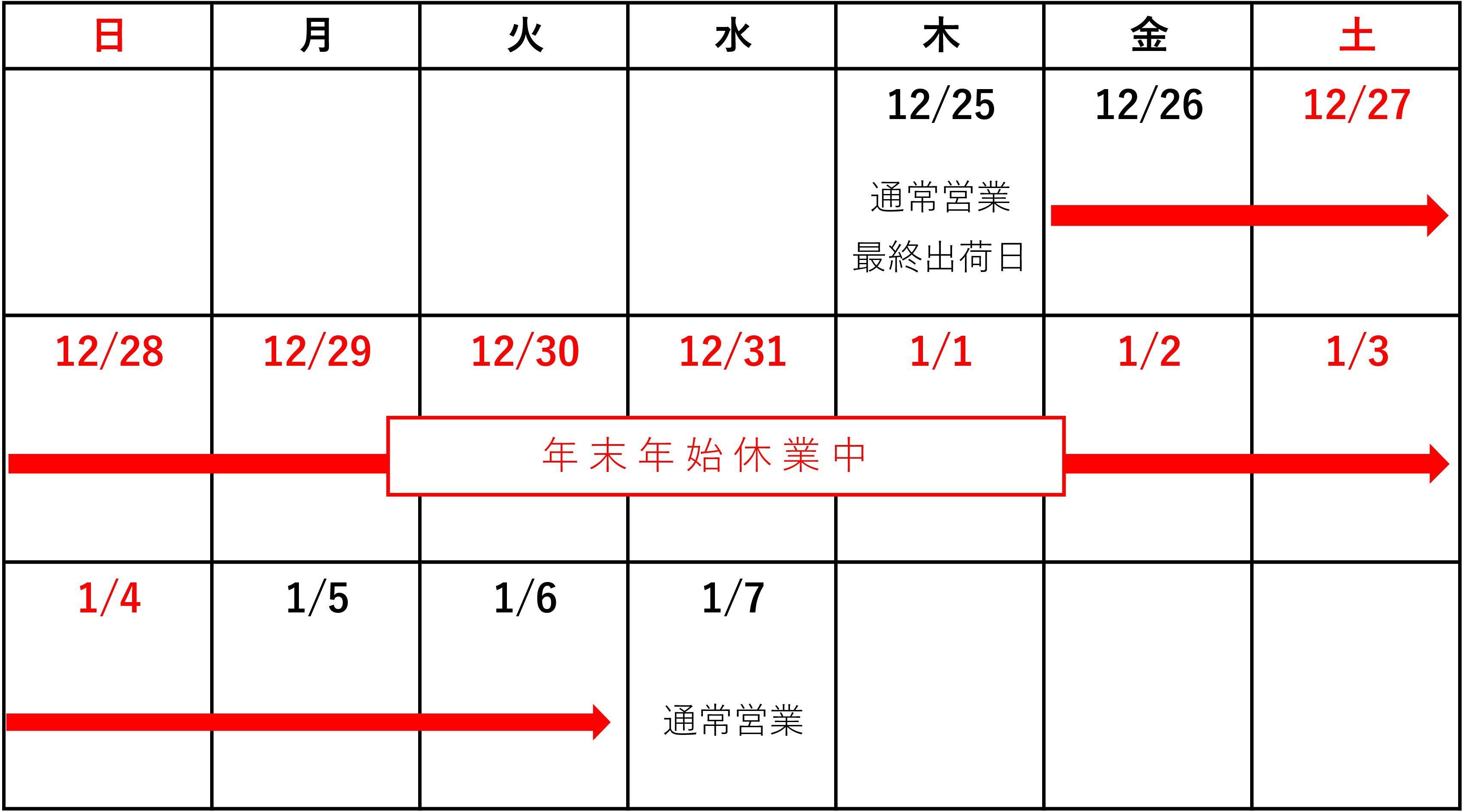 年内の最終出荷は12月25日(木)となります。